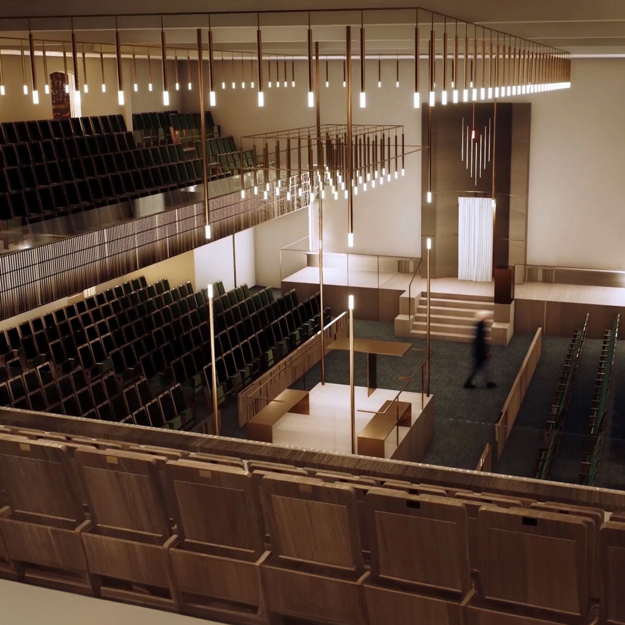 A grand double-height entry connects the historic Synagogue with the new community centre, seamlessly joining the old with the new. The design reflects a collaborative process, addressing cultural and operational needs for both present and future use.