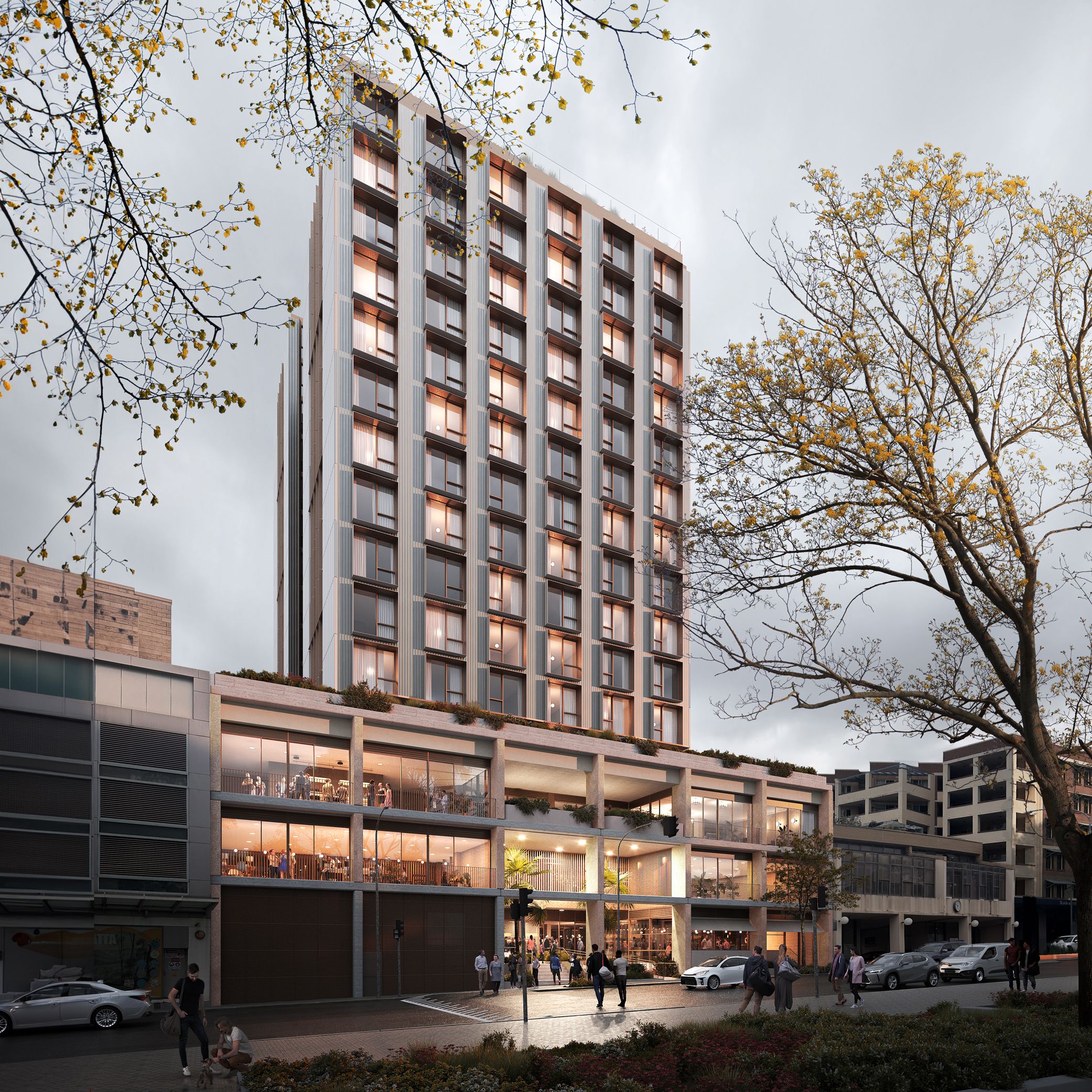 The innovative construction methodology employs volumetric, modular components, reducing the in-situ works on-site to only the podium, tower core and roof-top elements. Building massing and layouts are driven by a combination of structural and modular efficiencies, coupled with design drivers, to meet operational, environmental and market-driven outcomes.