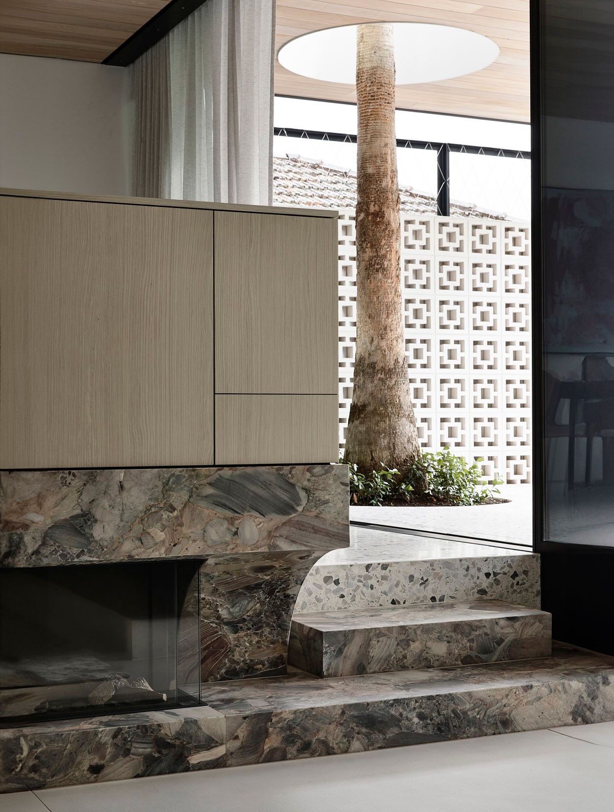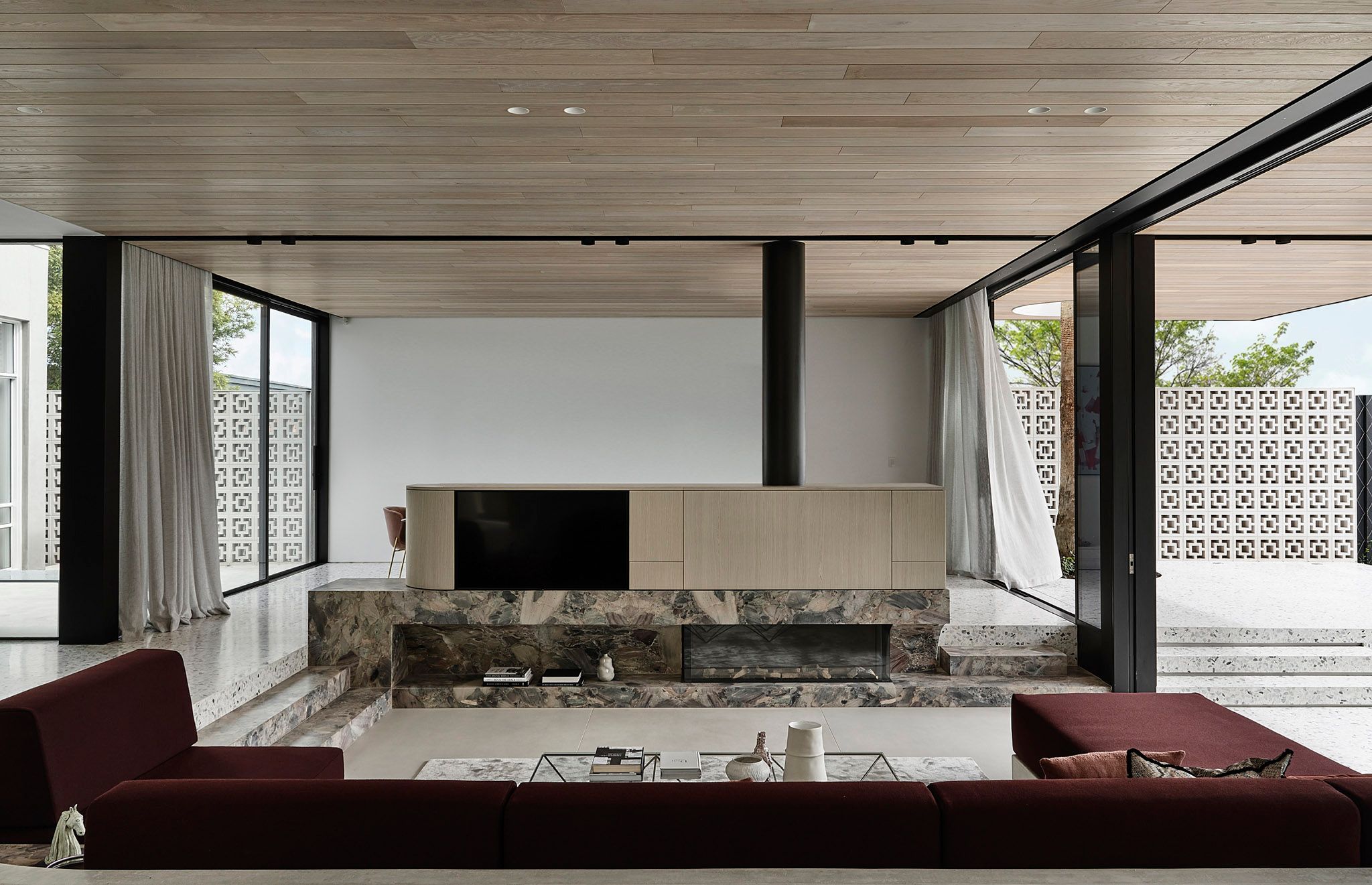 A sunken lounge, framed by warm materials and natural light, serves as the focal point for connection and conversation.