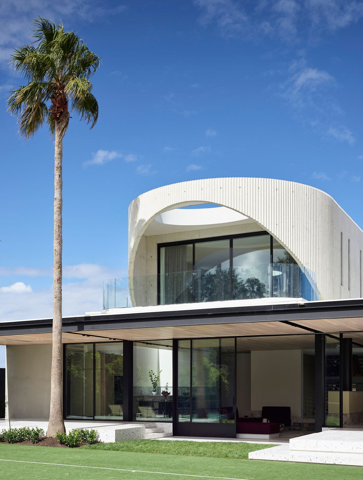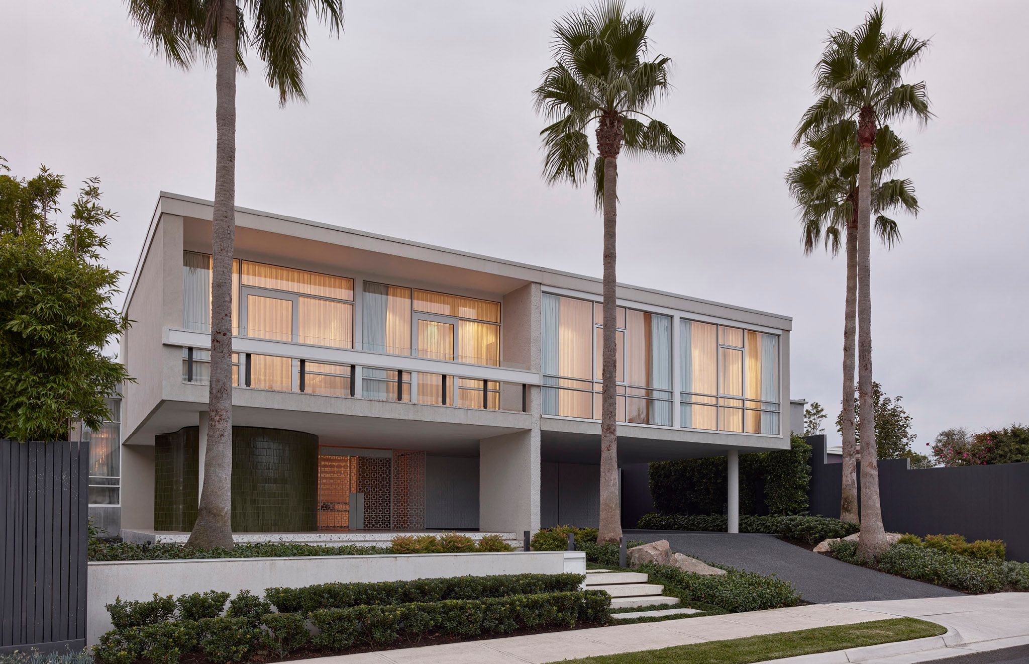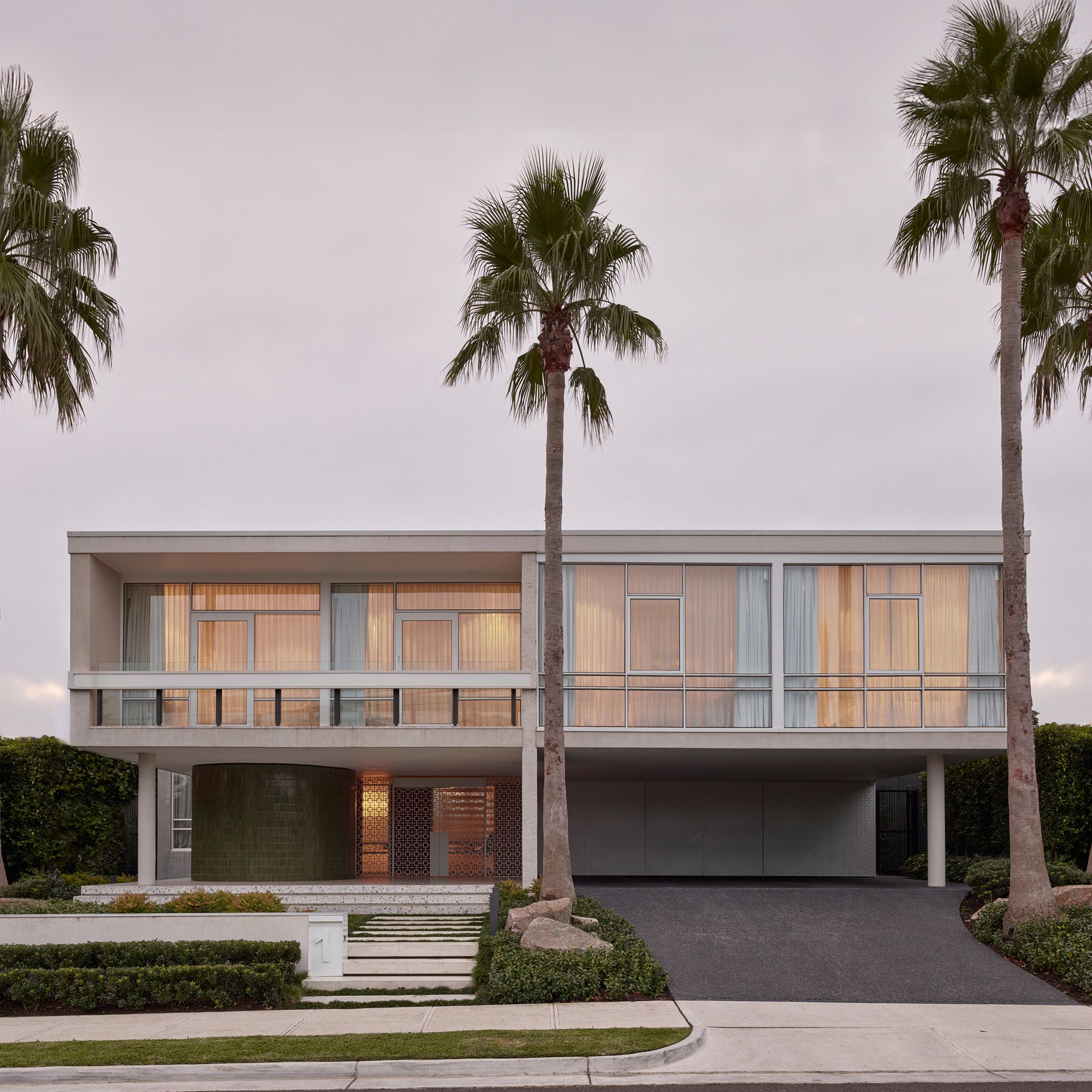 Architects Holgar & Holgar's opulent, Hollywood-inspired design, featuring a signature curvilinear façade, set the stage for this home's reinvention.