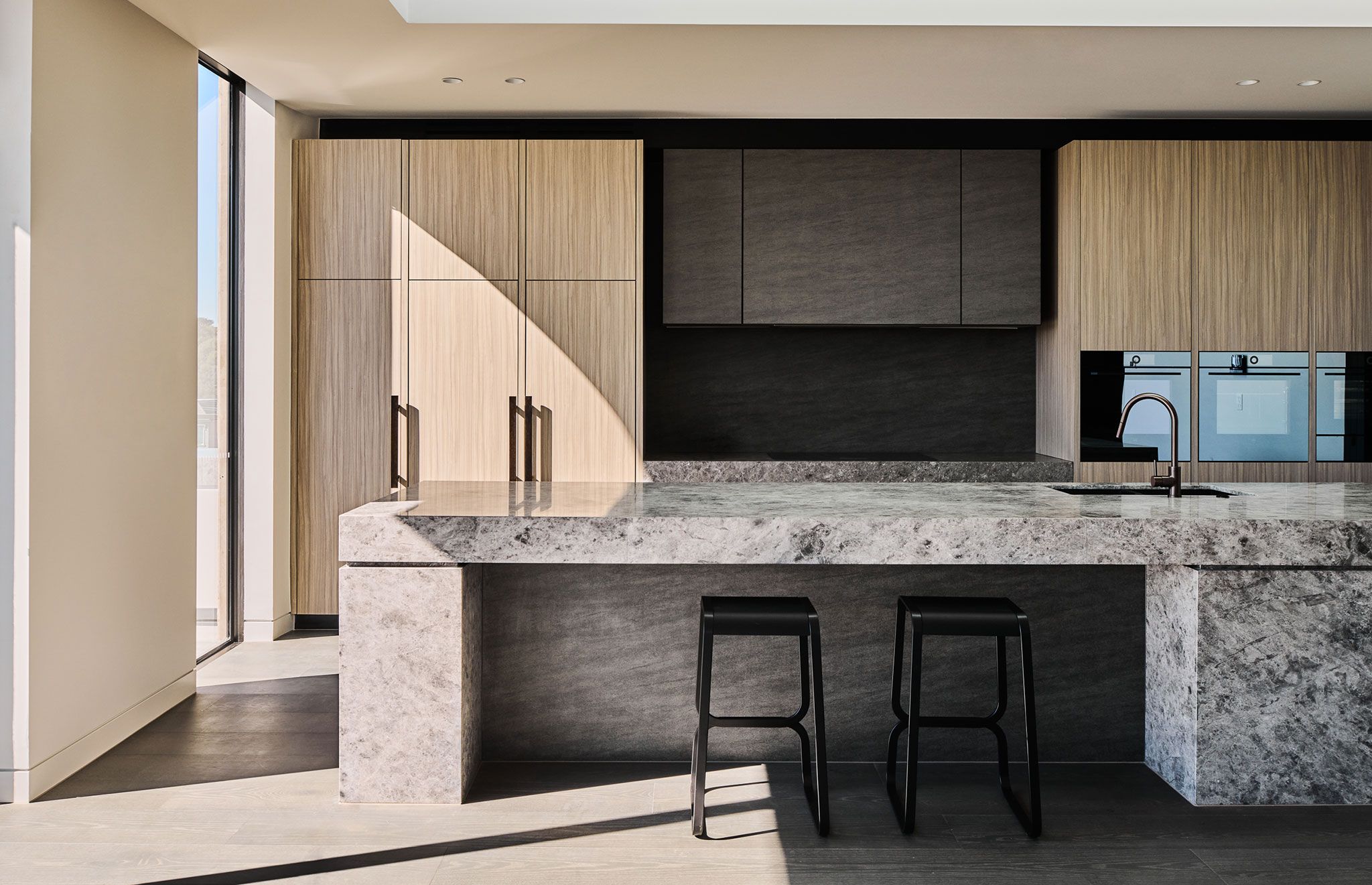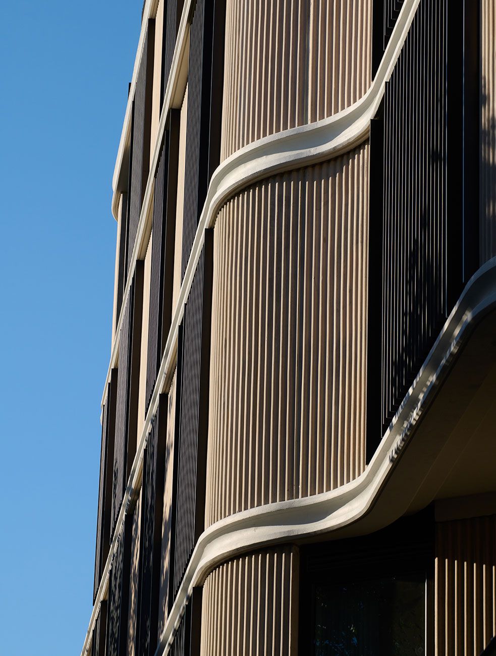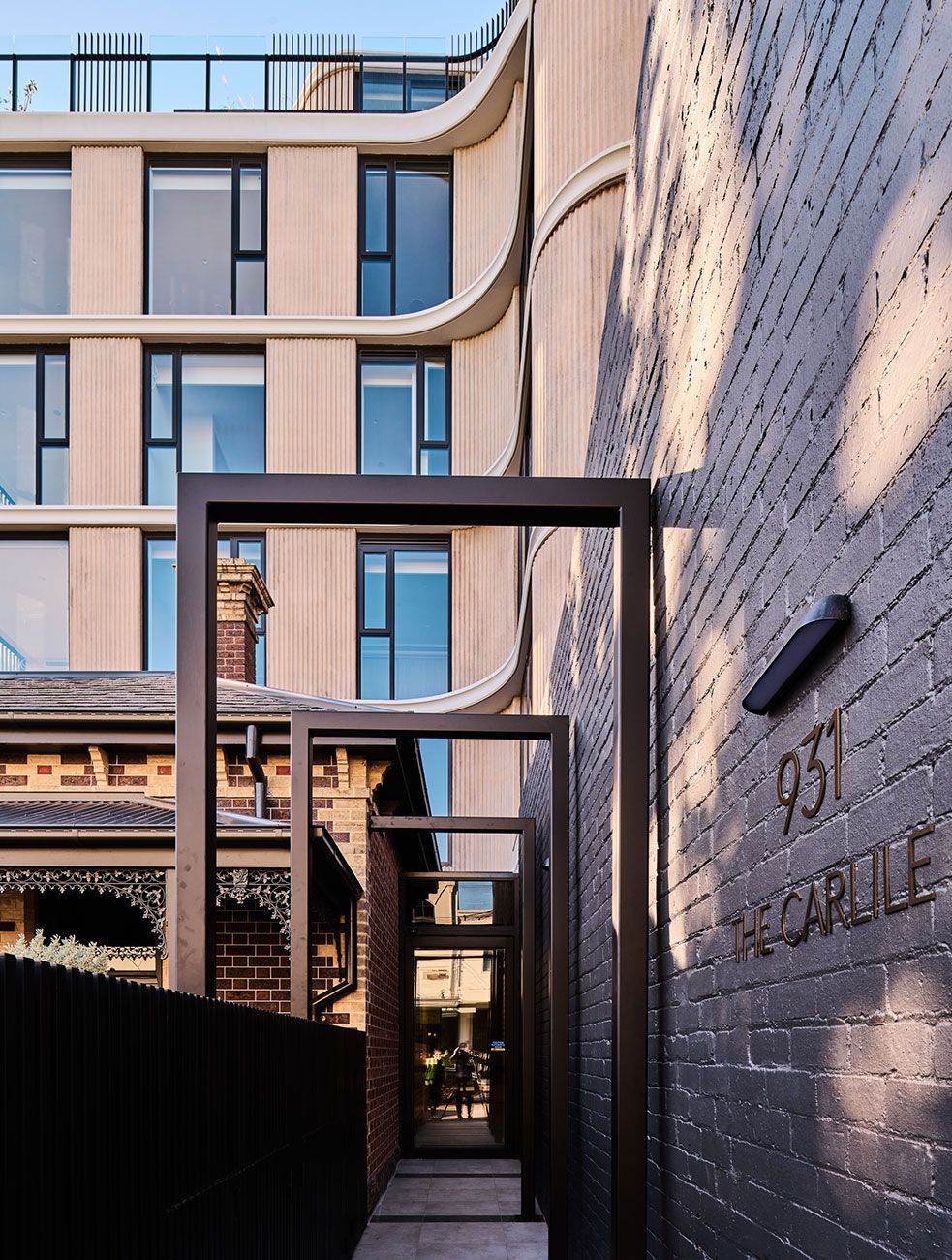 Entering through a familiar shopfront and re-purposed Victorian cottage, the design maintains a human and tactile scale. Horizontal embellishments, including exposed slab edges, reference the area and reduce the building’s perceived verticality, ensuring harmony with its context.