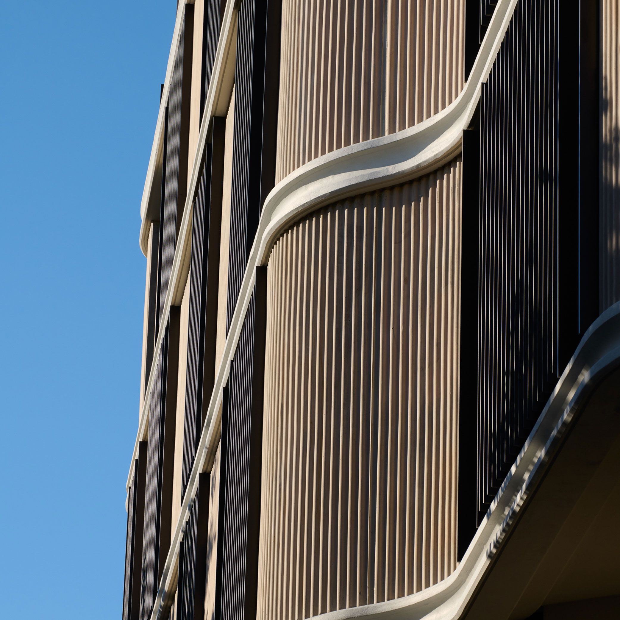 Precast panels soften unadorned surfaces, while operable glazing and shading elements in the north façade provide adaptability, regulating daylight, ventilation, and heat gain for enhanced comfort and energy efficiency.